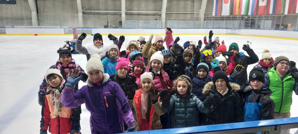 Die Kinder der 4a und 4b haben viel Spaß beim Eislaufen.