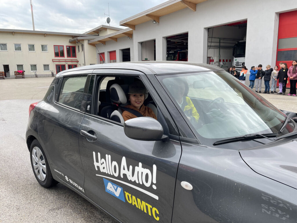 Auch die Kinder der dritten Klassen nahmen am Mobilitätsprogramm „Hallo Auto“ (ÖAMTC und AUVA) teil. Bei der Feuerwehr Wagram beeindruckte die Kinder der lange Bremsweg im Auto.