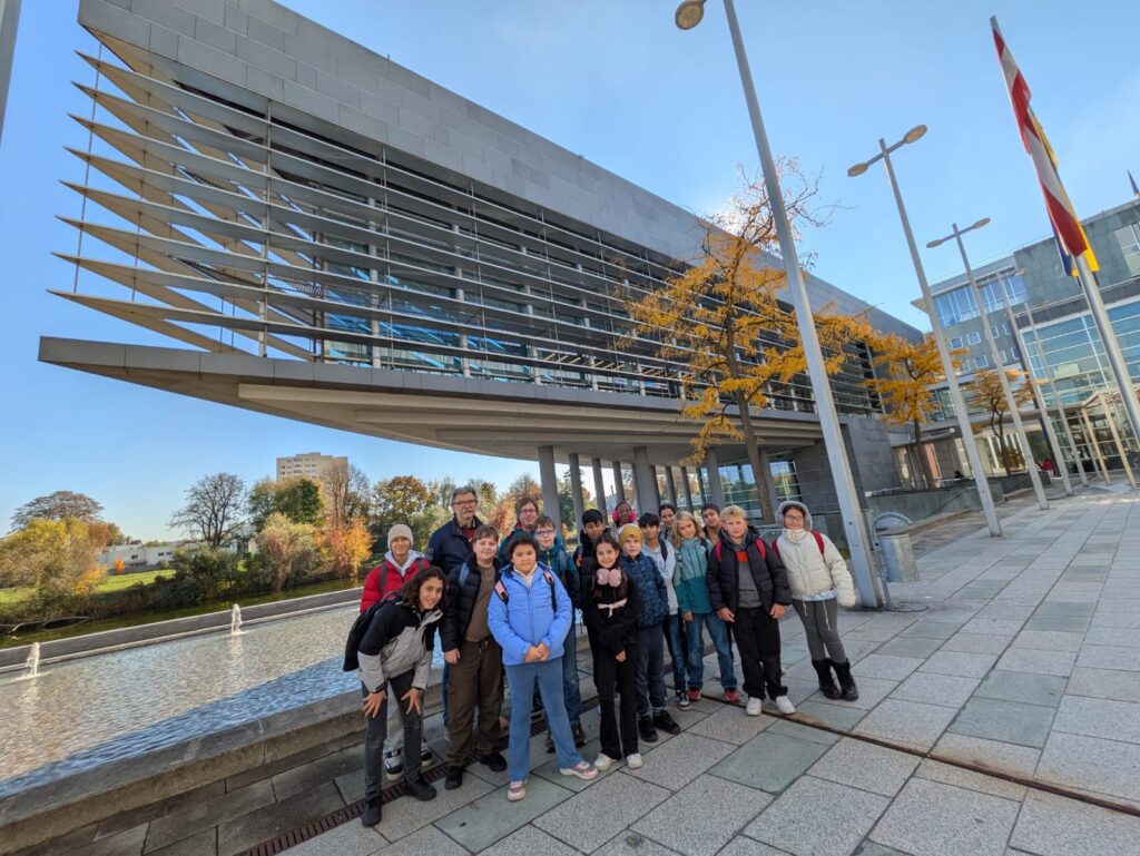 Am Donnerstag, dem 16. Oktober 2025, besuchte die Klasse 4b bei wunderschönem Herbstwetter das Landhaus im Regierungsviertel. Bei einer Führung erfuhren die Schüler viel Interessantes über NÖ und die Landesregierung.