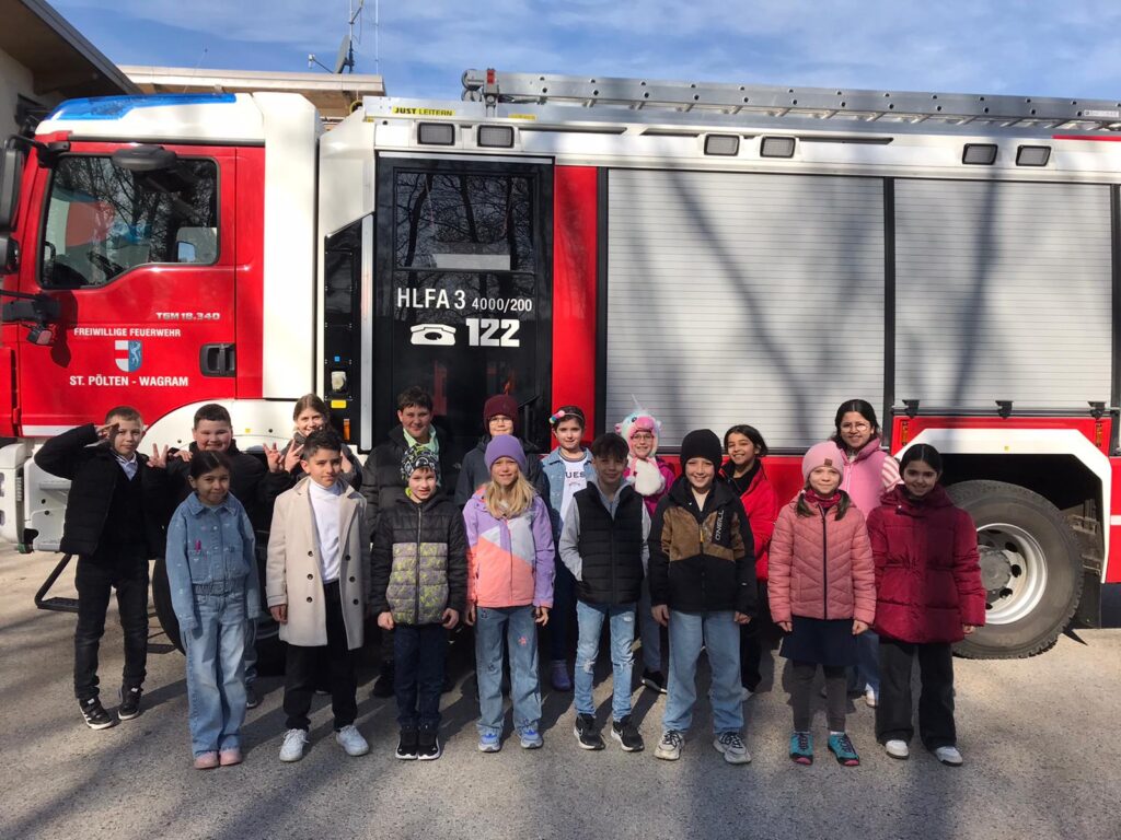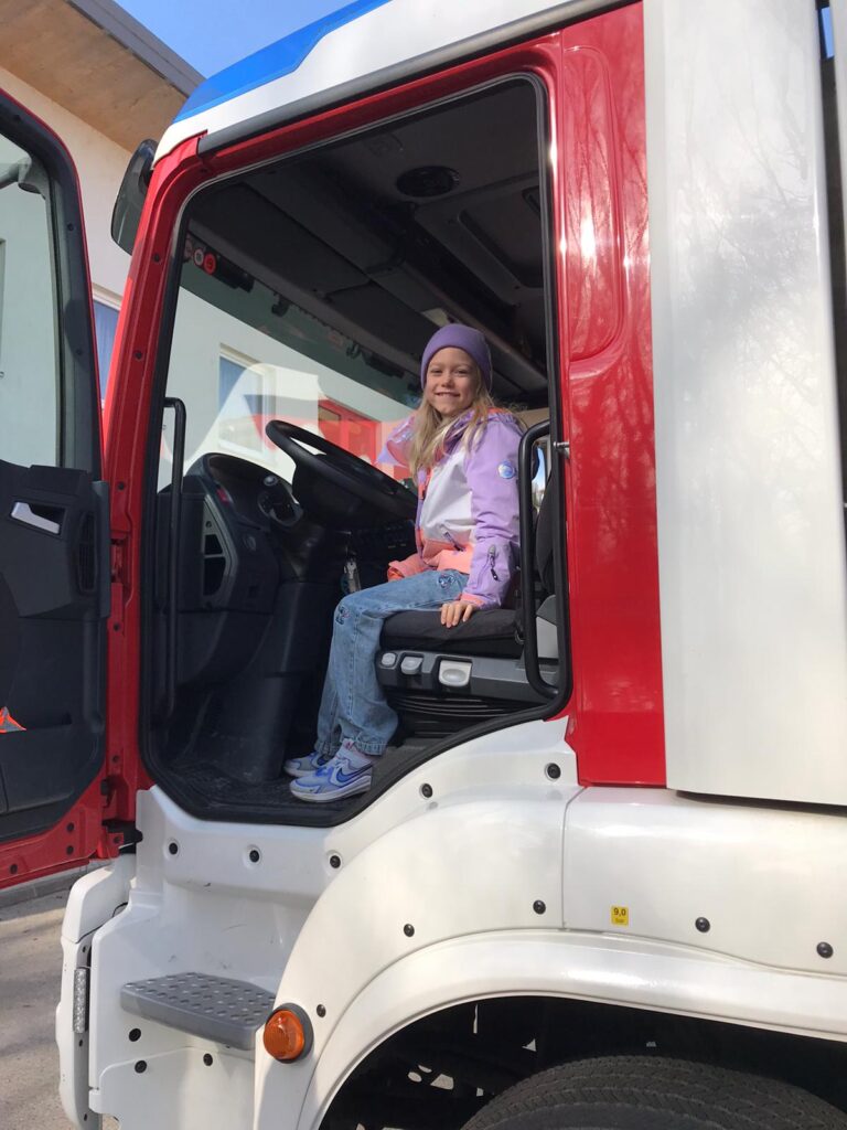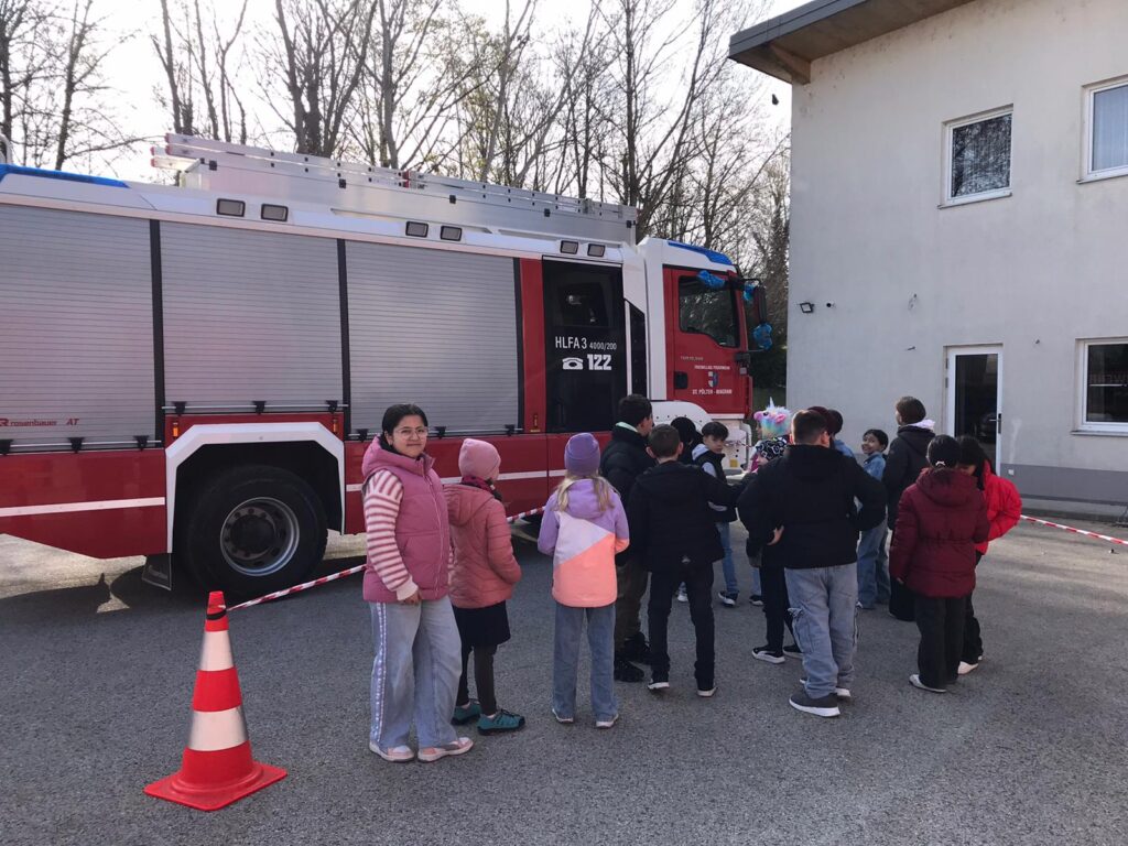 Zu Besuch bei der Feuerwehr wurde unseren 3.Klassen der Tote Winkel anschaulich erklärt. Dazu durften die Kinder der Reihe nach im Feuerwehrauto Platz nehmen.